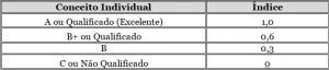 A valoração do conceito do trabalhador será de acordo com a tabela abaixo: