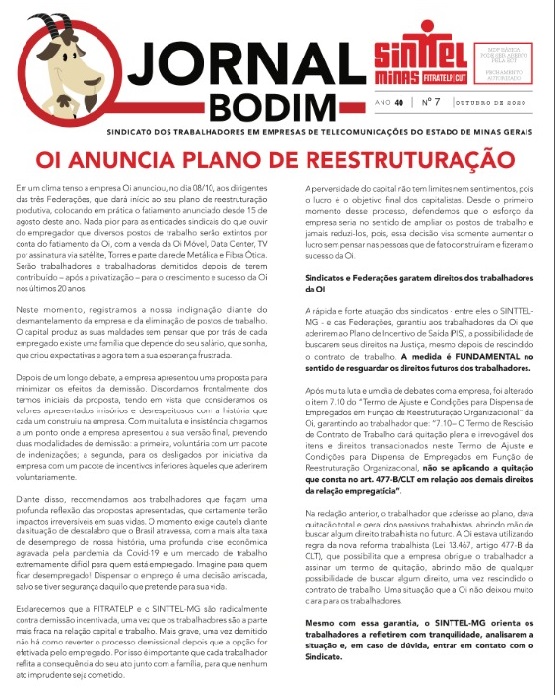 JORNAL OUTUBRO – OI ANUNCIA PLANO DE REESTRUTURAÇÃO Version Download 26 Tamanho do Arquivo 30.56 MB File Count 1 Data de Criação 23 de outubro de 2020 Ultima Atualização 18 de dezembro de 2020 Download Description