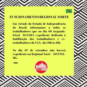 FUNCIONAMENTO REGIONAL NORTE – FERIADO SETE DE SETEMBRORegião Norte / Por admin / 4 de setembro de 2021 4 de setembro de 2021