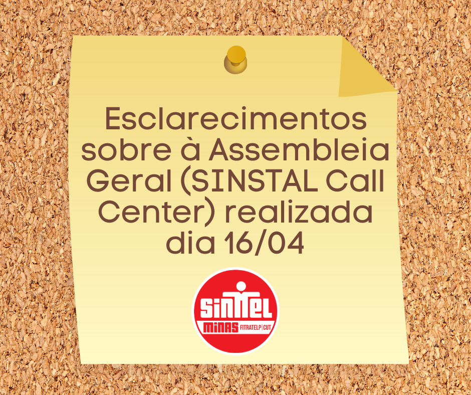 Diante dos questionamentos acerca da proposta do SINSTAL Call Center para CCT 2020/2021, aprovada pelos trabalhadores na Assembleia Geral Extraordinária realizada na última sexta-feira (16/04), o SINTTEL-MG esclarece que: