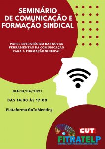 Seminário de Comunicação e Formação SindicalNotícias / Por admin / 12 de abril de 2021 12 de abril de 2021Acesso ao Seminário: https://global.gotomeeting.com/join/904926421